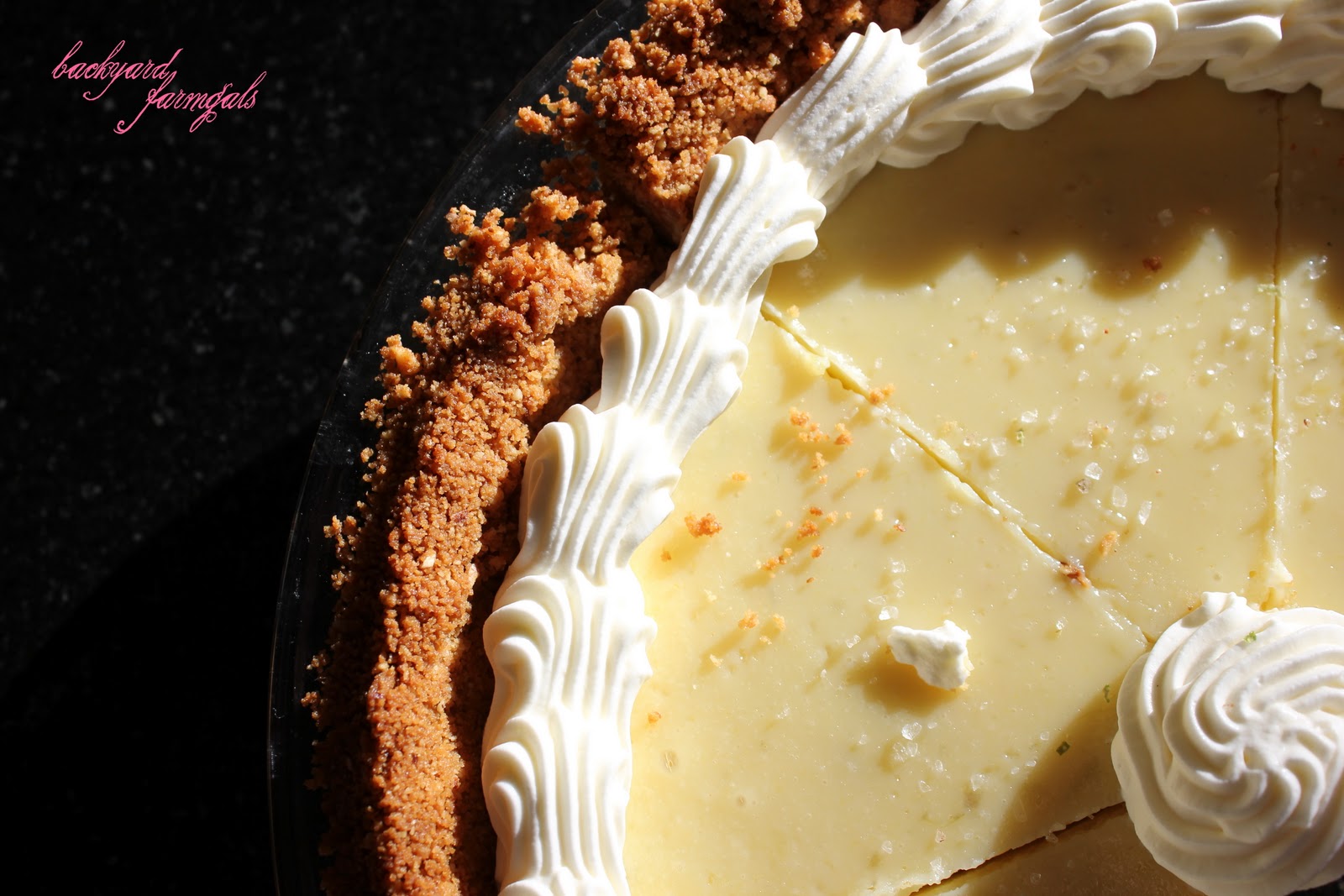 I ran across a recipe for citrus salts from 101cookbooks.  Basically it is any kind of citrus zest mixed with salt, dried and ground to use as a finishing salt.  I see things like this and my mind starts to wander.  I dream about flavor combinations and creative ways to use ingredients like this.  This time my mind settled on lime salt sprinkled over a fresh lime pie.  A little salty-sweet flavor combination to brighten up a snowy afternoon.  Sassy...the only word capable of describing this dessert!
